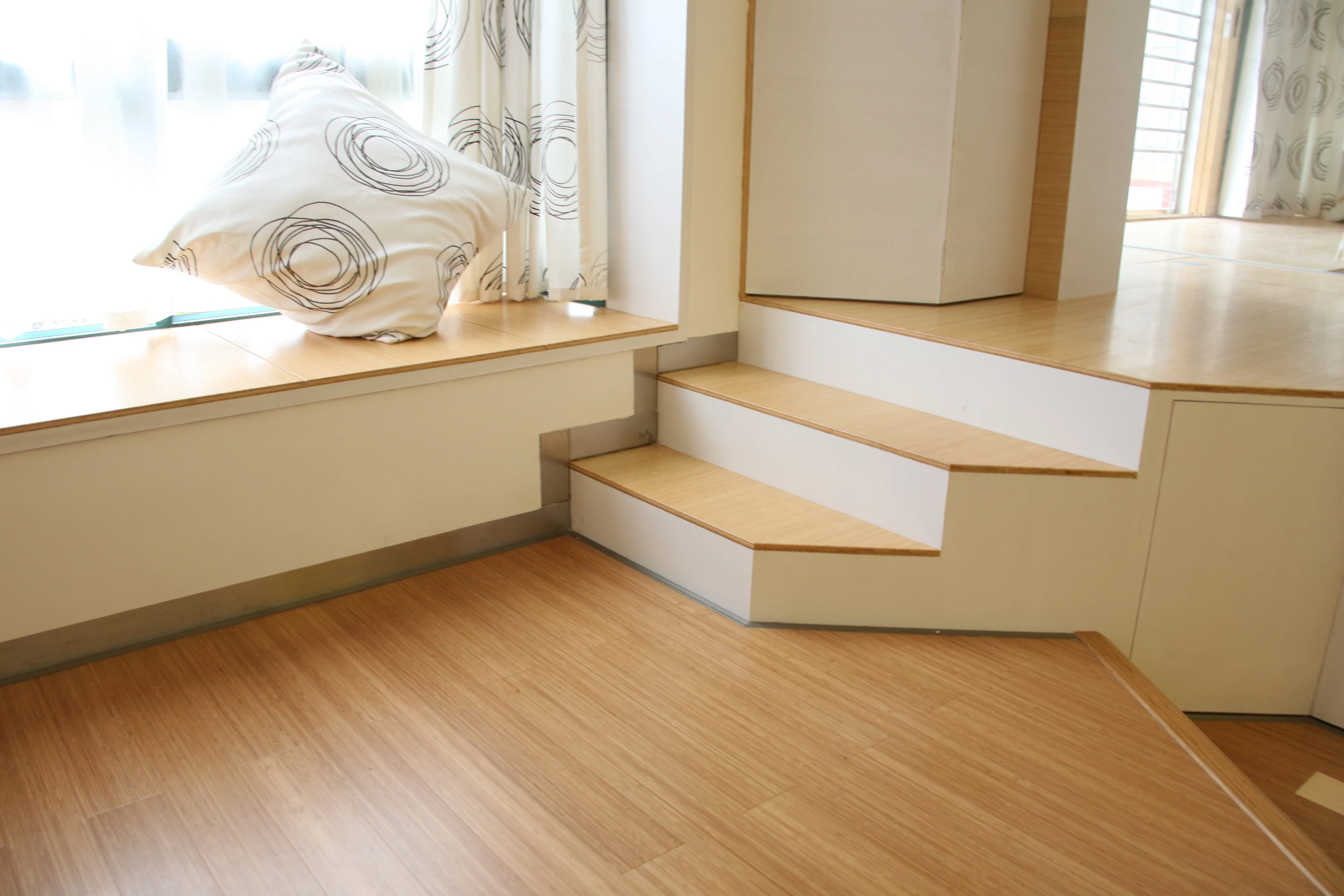 Тонкий зернистый узор: Бамбуковый пол, прессованный сбоку, имеет более тонкий рисунок зерна, чем паркет из плоского прессованного бамбука., придавая более сдержанный и элегантный внешний вид.